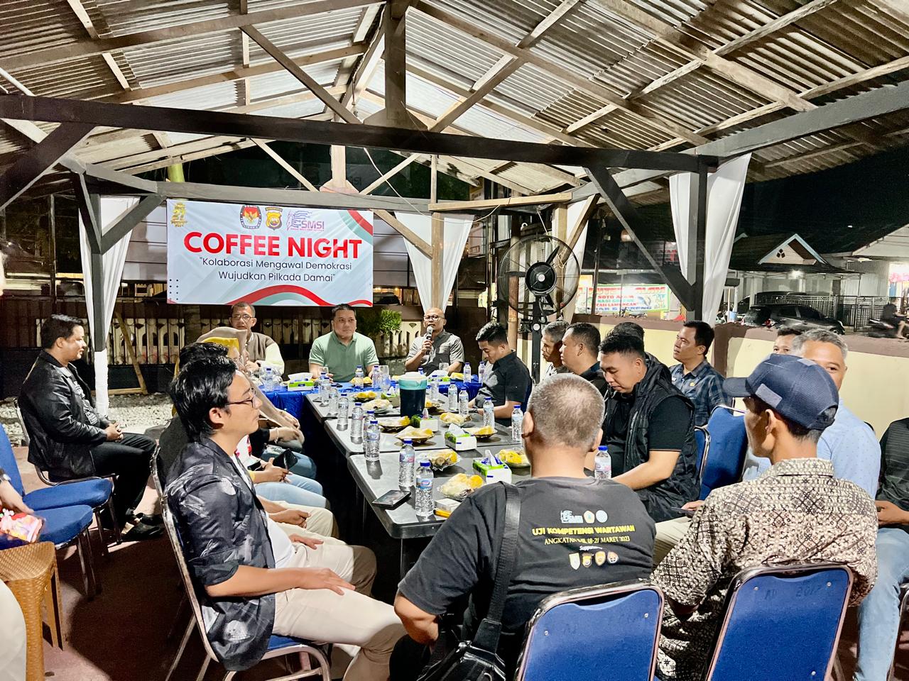 Acara Coffe Night tersebut dihadiri juga oleh Wakapolres Kaur Kompol Indramawan Kusuma Trisna, Kasat Intelkam AKP Ahmad Khairuman, Kapolsek Kaur Selatan, Ketua SMSI Kaur Yusman, juga Sekretaris KPU Kaur.