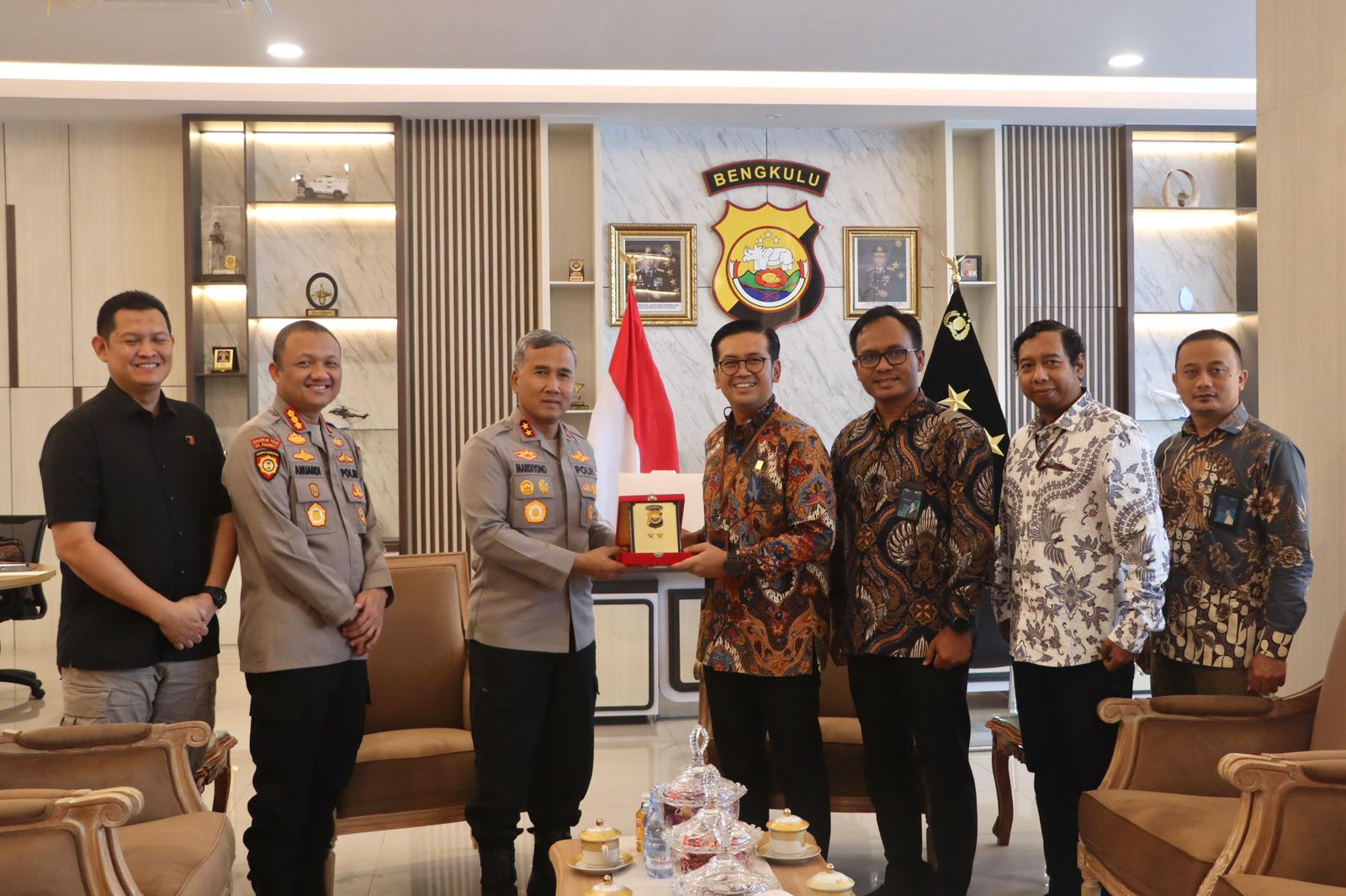 Dalam rangka mempererat hubungan kelembagaan serta memperkuat sinergitas antara Kepolisian dengan perusahaan penyedia energi nasional, Kapolda Bengkulu Irjen Pol. Mardiyono, S.I.K., M.Si. menerima kunjungan silaturahmi dari PT PLN (Persero) Unit Induk Sumatera Bagian Selatan, bertempat di ruang kerja Kapolda Bengkulu, Kamis (13/11) pagi.