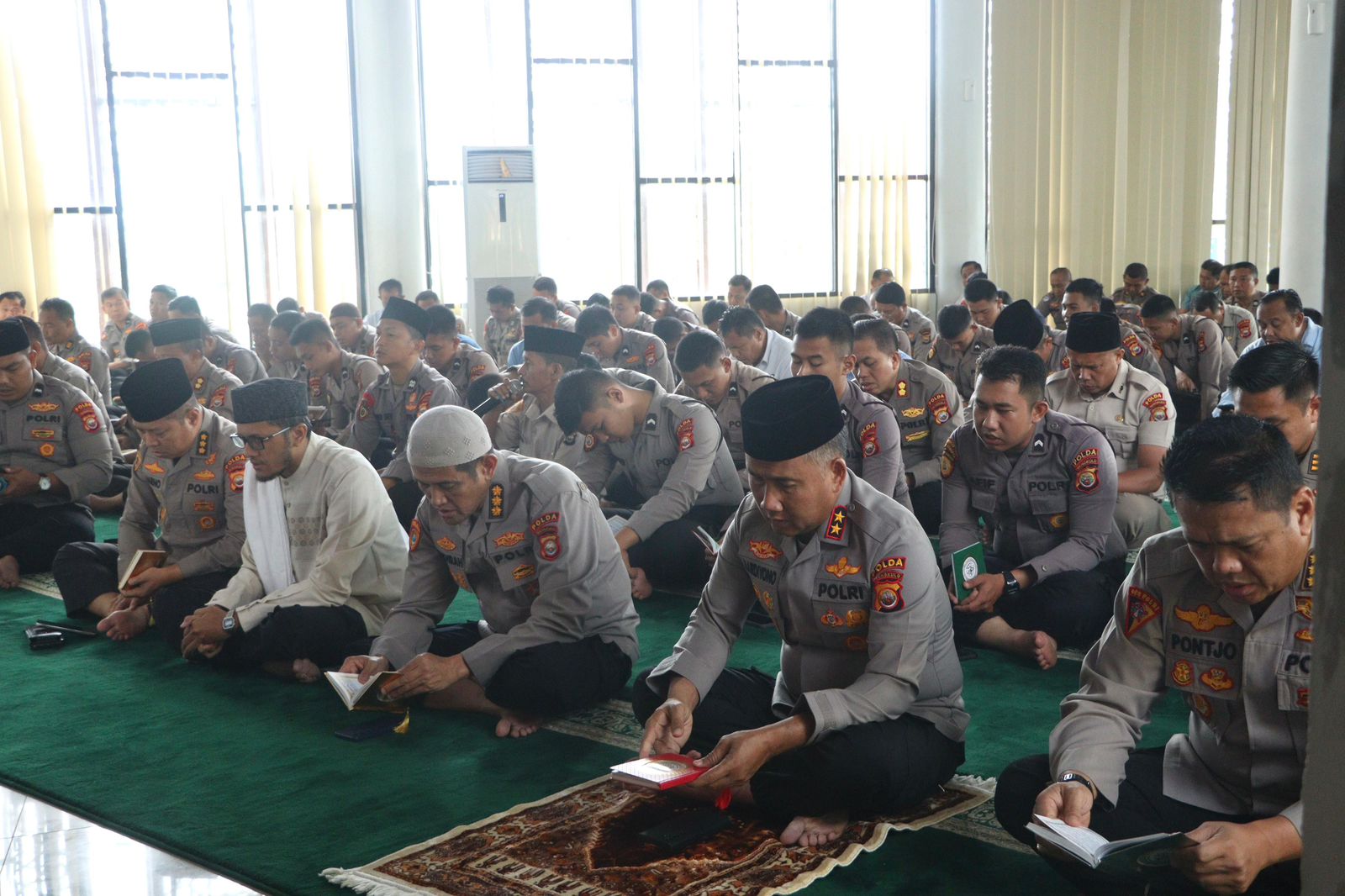 kegiatan ditutup dengan doa bersama yang dipanjatkan untuk keselamatan, kelancaran tugas, serta keberkahan bagi seluruh personel dan keluarga besar Polda Bengkulu. Suasana penuh kekhusyukan dan kebersamaan tampak menyelimuti masjid, mencerminkan semangat spiritual yang menyatu dalam pengabdian kepada bangsa dan negara.