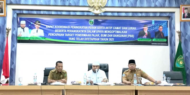Bengkulu, Siberindo.co – Wali Kota Bengkulu Helmi Hasan melakukan evaluasi terhadap Camat dan Lurah terkait capaian pajak bumi dan bangunan (PBB) yang terhitung masih di angka 82 persen (Januari-Oktober 2021).