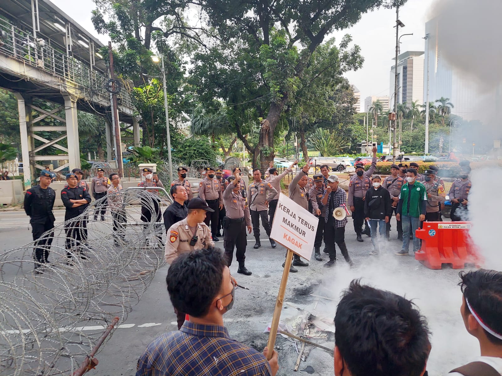 Namun di tengah aksi, mereka sempat terlibat bentrok dengan sejumlah aparat kepolisian yang mengamankan demo tersebut, menurut saksi dan rekaman yang beredar.