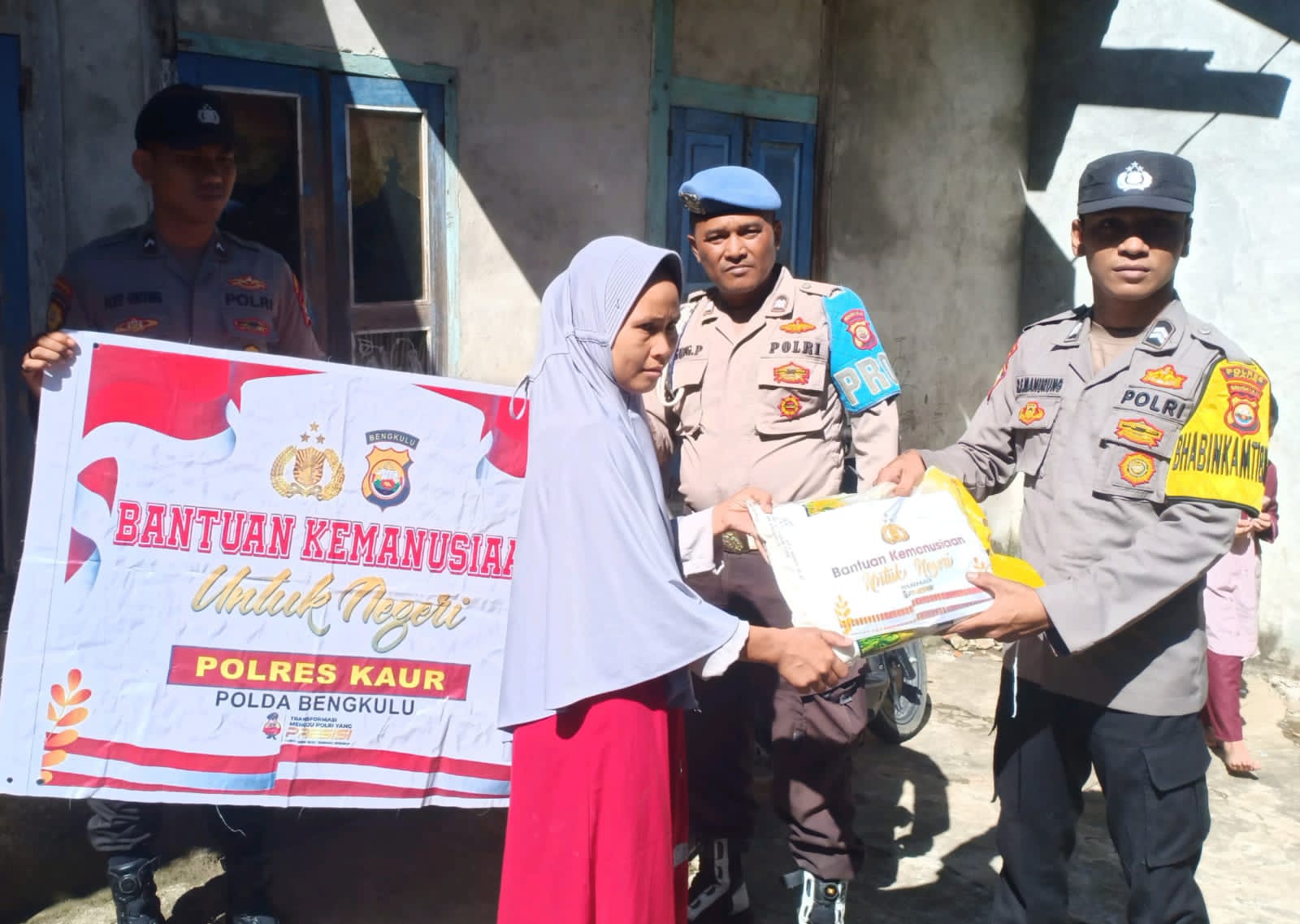 Kaur – Polsek Tanjung Kemuning, Polres Kaur Polda Bengkulu kembali menyalurkan bantuan sosial kepada warga kurang mampu dan atau yang membutuhkan, Jumat (14/4/2023).
