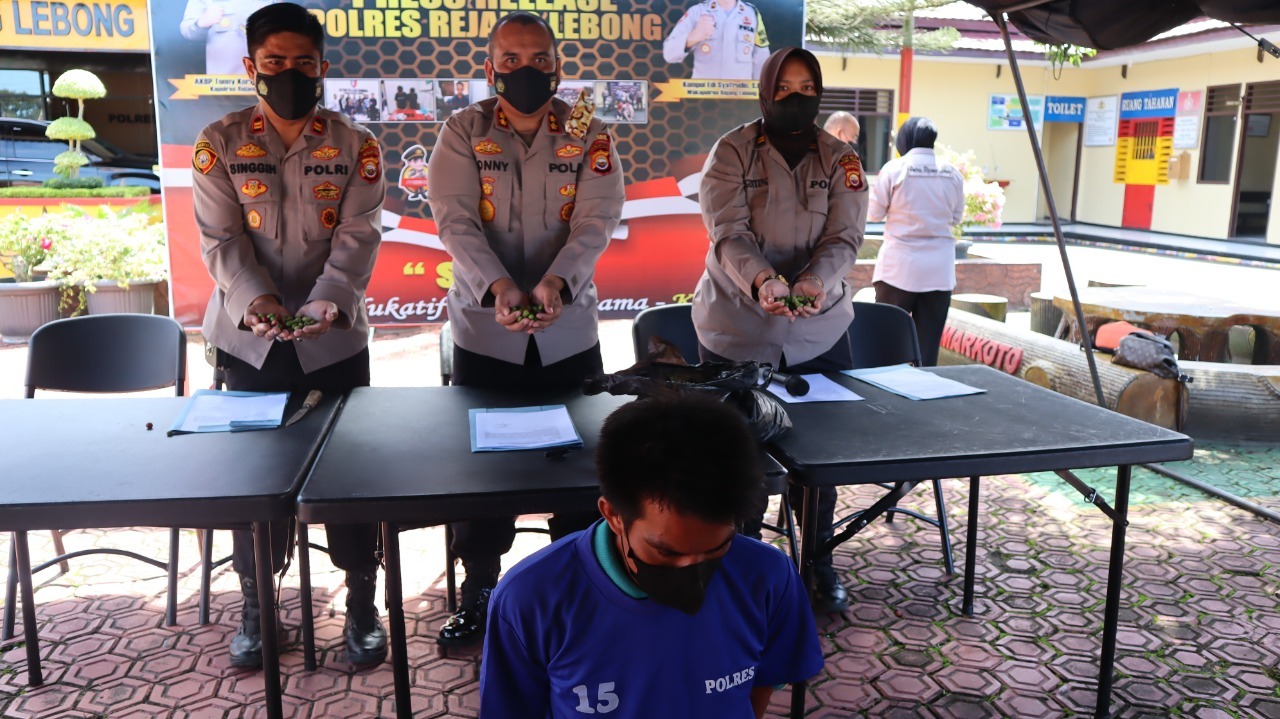 “Terduga pelaku ditangkap berdasarkan Laporan Polisi Nomor : LP / B.209 / V / 2022 / SPKT / polsek BENGKO / RES REJANG LEBONG/ POLDA BENGKULU, tanggal 12 Mei 2022,” jelas Kapolsek saat press release di Mapolres Rejang Lebong, Sabtu (13/5/2022).