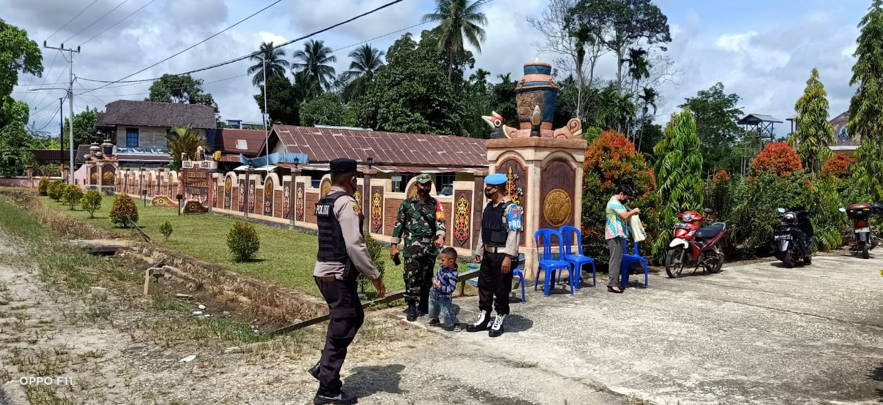 MUARA TEWEH – Babinsa 1013-01/Kandui, Serda Rizal bersama aparat kepolisian dan warga setempat melaksanakan Kegiatan Pengamanan Gereja di Desa Kandui, Kecamatan Gunung Timang dalam rangka ibadah umat kristiani melaksanakan ibadah. Minggu (13/06/21).