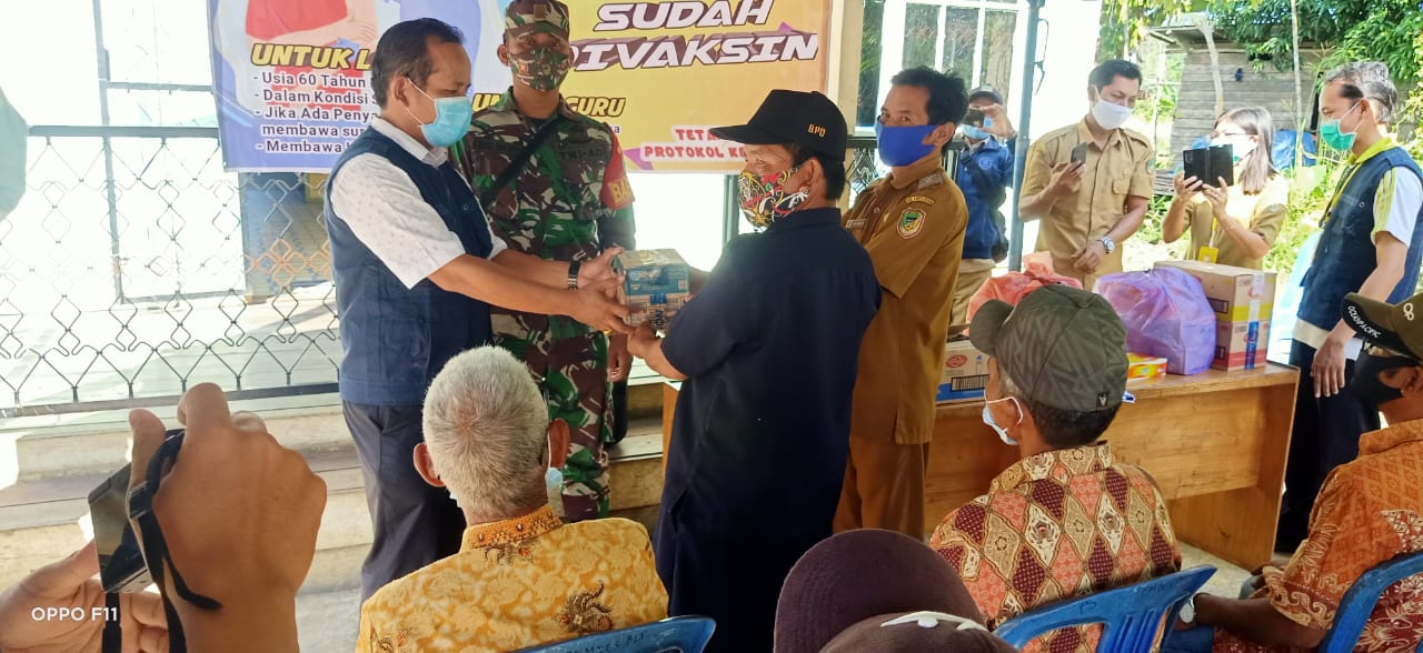 Pada kesempatan tersebut, Babinsa Koramil 1013-04/Benangin melihat langsung pelaksanaan pemberian suntik Vaksin Covid-19 tahap -1 kepada Lansia yang sudah terdaftar sebagai penerima vaksin