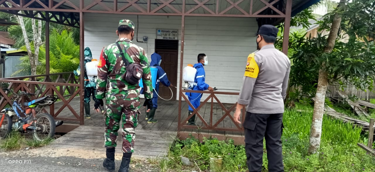 Babinsa Koramil 1013-06/Lahei melaksanakan pendampingan Penyemprotan Disinfektan angkiringan dalam rangka pencegahan penyebaran Covid-19 di Desa Lahei