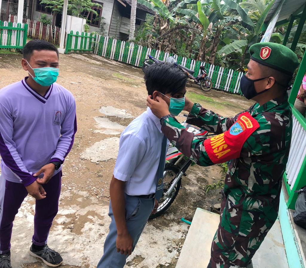 Dlaam pelaksanaan kegiatan tersebut Serda Agustinus mengingatkan pentingnya menggunakan masker saat situasi dan kondisi seperti ini.Penggunaan masker sangat penting demi mencegah penyebaran Covid 19 atau virus corona masuk ke wilayah Desa Tumbang naan.