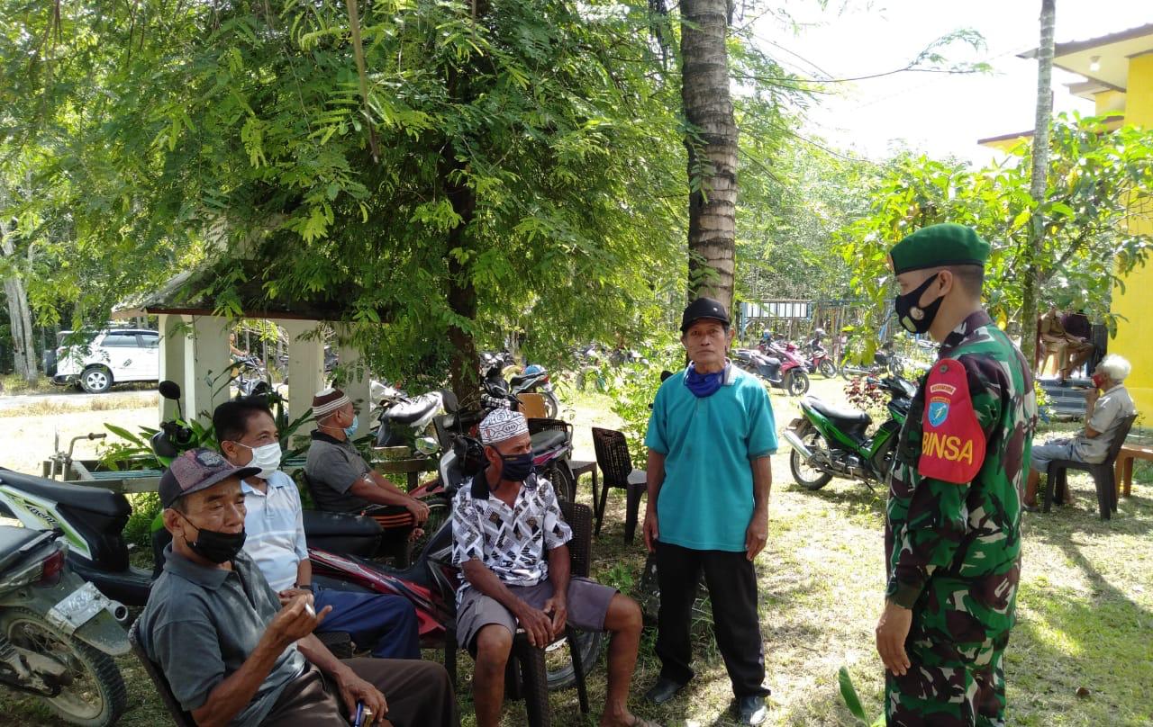 Koramil 1014-05/P.Banteng Babinsa Praka Angkong melaksanakan komunikasi sosial (Komsos) untuk mendekatkan diri supaya terjalin hubungan kekeluargaan dan kebersamaan dengan warga binaan di Desa Sidomulyo, Kecamatan Pangkalan Banteng, Senin (14/06/2021).