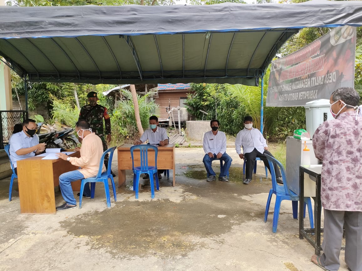 BARITO UTARA – Praka Baharudin Babinsa Koramil 1013-01/Kandui jajaran Kodim 1013/Mtw bersama tim pemantau dari kecamatan dan Desa melaksanakan pemantauan dan pengecekan Posko PPKM berbasis Mikro yang, Bertempat di Desa Baliti Kecamatan Gunung Timang Kabupaten Barito Utara, Pada hari Sabtu (12/06/21).