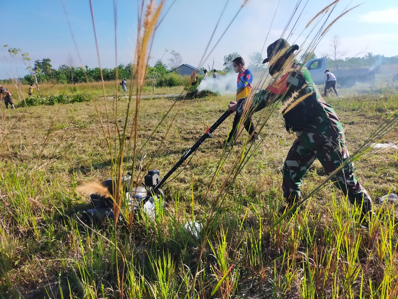“Kegiatan ini sebagai pembinaan teritorial Babinsa di wilayah binaan. Kita juga berupaya membantu dan mengatasi kesulitan masyarakat dalam memberikan contoh ke masyarakat membudayakan hidup bergotong royong, dengan tetap memperhatikan aturan protokol kesehatan, disiplin menggunakan masker, menjaga jarak, rajin mencuci tangan dengan sabun ” jelasnya.