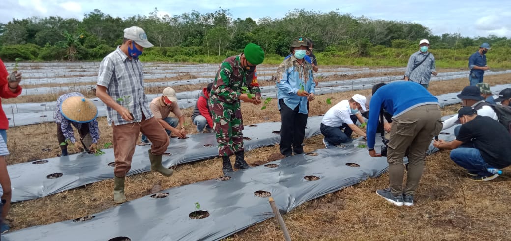 MURUNG RAYA – Guna percepatan masa tanam, Babinsa Ramil 07/Puruk Cahu Dim 1013/Muara Teweh Serda Tukilan membantu penanaman bibit cabe di lokasi lahan milik Bapak Siswanto bertempat di Desa Muara Jaan, Kecamatan Murung, Kabupaten Murung Raya. Minggu (13/06/21).