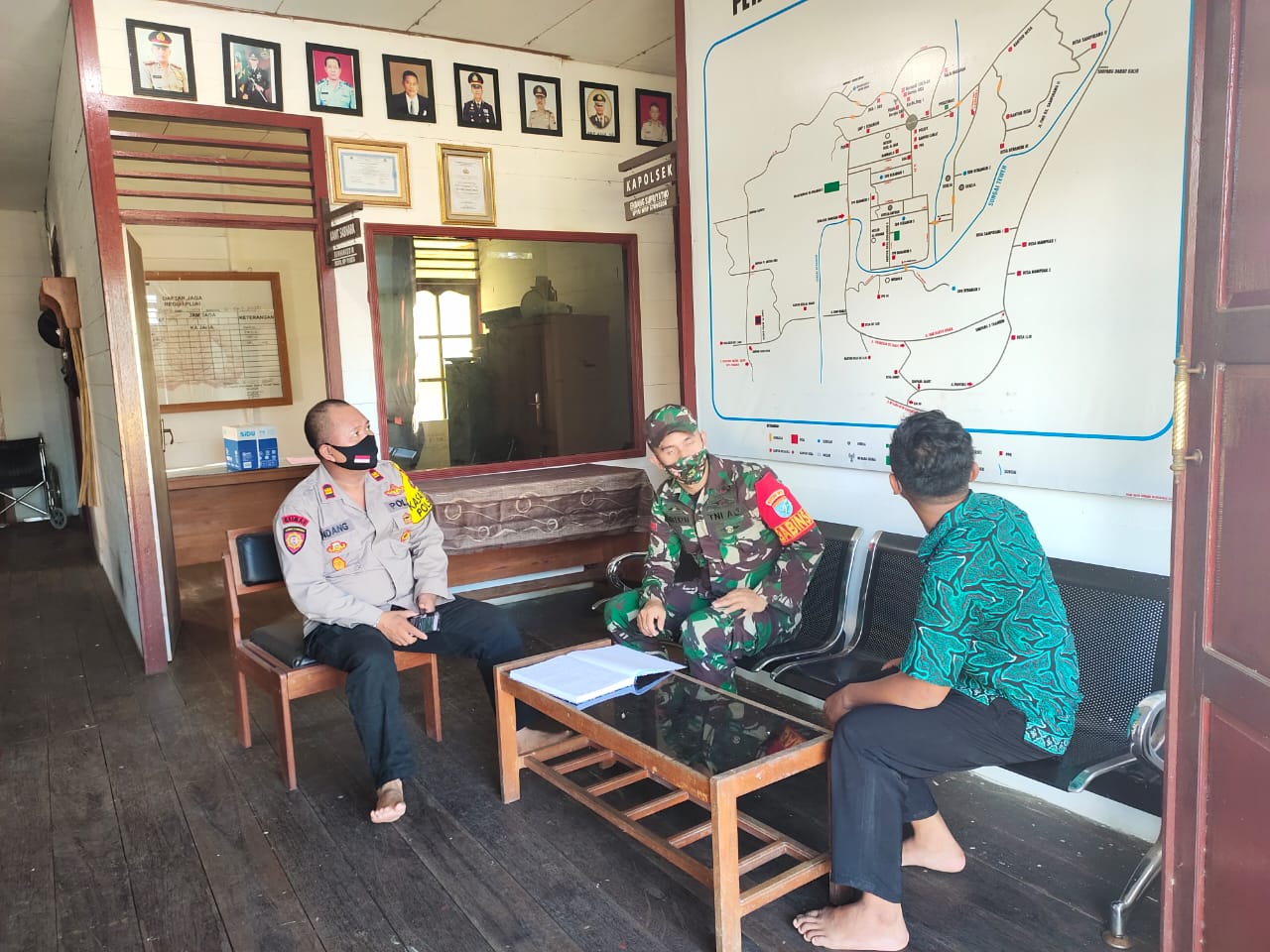Bintara Pembina Desa, anggota Koramil 1013-07/Puruk Cahu Serda Tukilan melaksanakan Komunikasi Sosial (Komsos) yang bertempat di Kantor Polsek Murung Kabupaten Murung , Minggu (13/06/21).