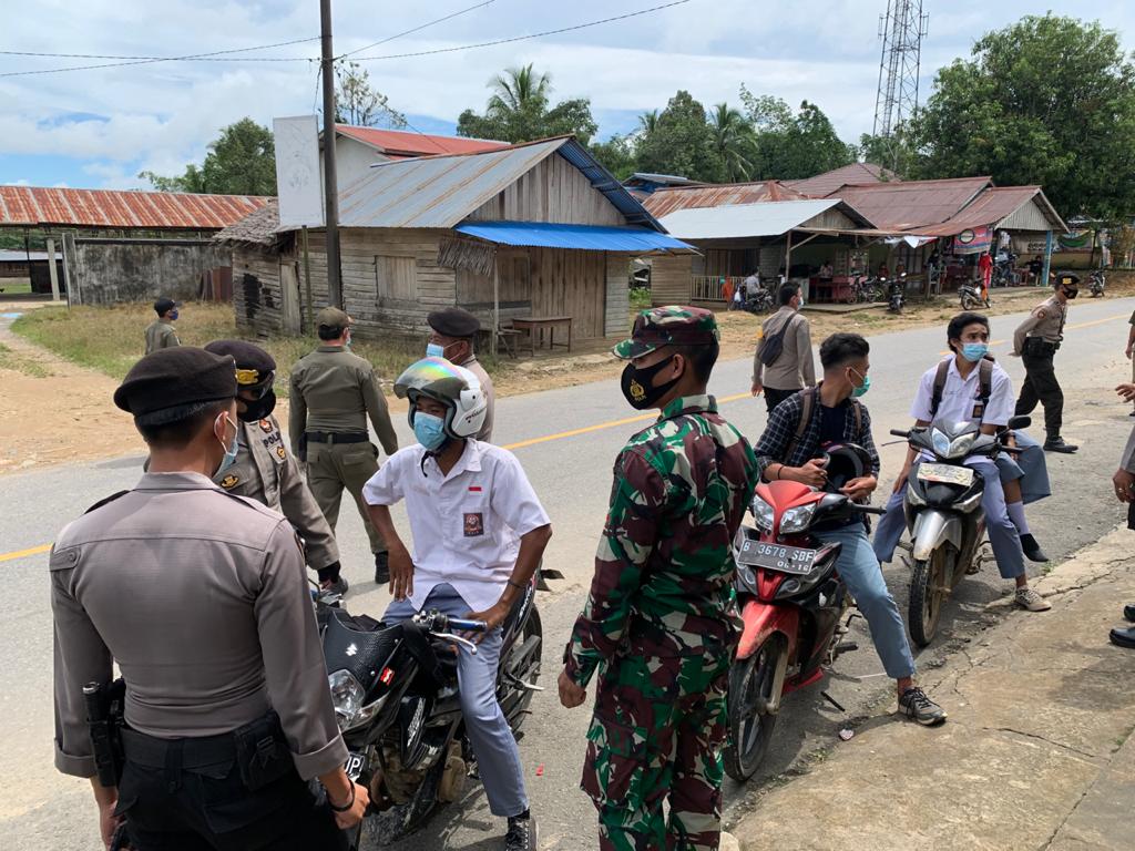 Mempawah – Anggota Koramil 1201-05 Toho bersama anggota Polsek melaksanakan operasi Yustisi pendisiplinan dalam rangka penegakan protokol Kesehatan di jalan raya Desa Sepang, Kecamatan Toho, Kabupaten Mempawah, Sabtu (12/6/2021).