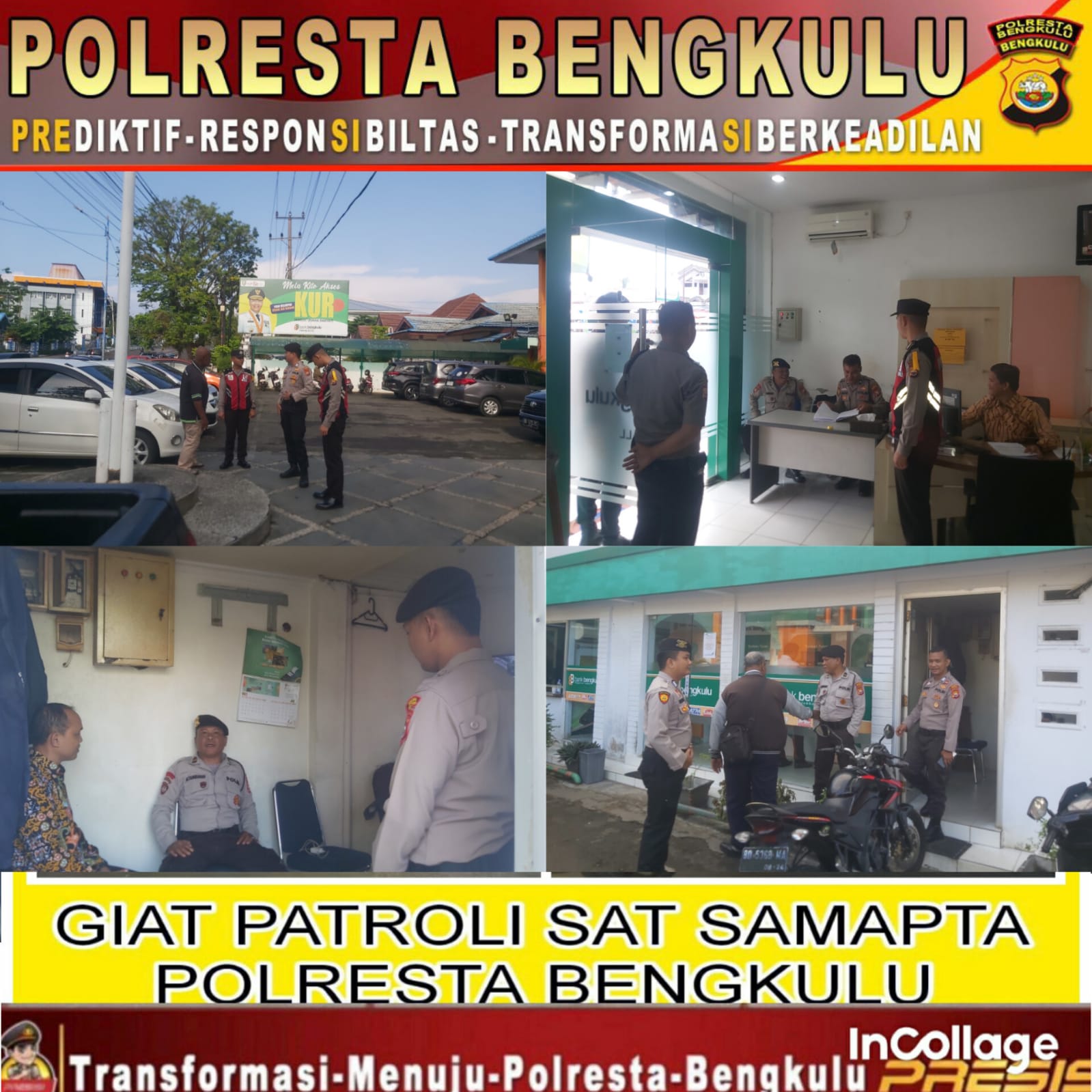 Adapun sasaran patroli kali ini yaitu di Bank Bengkulu Cabang Utama, Sawah Lebar, Megga Mall dan KCP Megga Mall, dan patroli dipimpin oleh kanit Obvit Ipda Hotlan T.