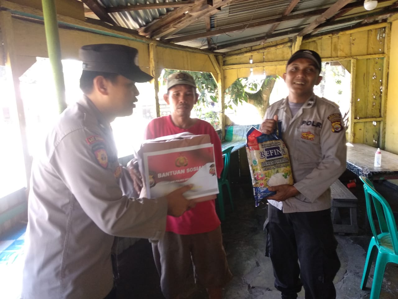 Penyerahan bantuan ini dilakukan oleh personel polsel Lais dengan cara mendatangi langsung rumah warga yang akan diberikan bantuan.