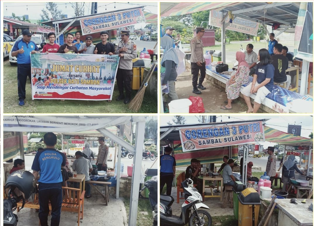 Jumat Curhat kali ini dilaksanakan bersama pedagang gorengan Neni di jalan Putri Gading Cempaka kelurahan Penurunan kecamatan Ratu Samban Kota Bengkulu, dan dipimpin langsung oleh kapolsek kompol Frengki Marianus Manik, S.E.