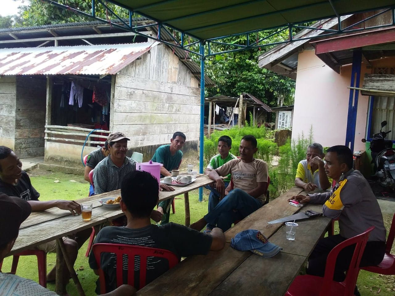 Mereka meminta solusi pada polisi dalam kegiatan Jumat Curhat di rumah Bapak Arnes Desa Meok Kecamatan Enggano, Kab.Bengkulu Utara, Jumat (14/7/23) Pagi.