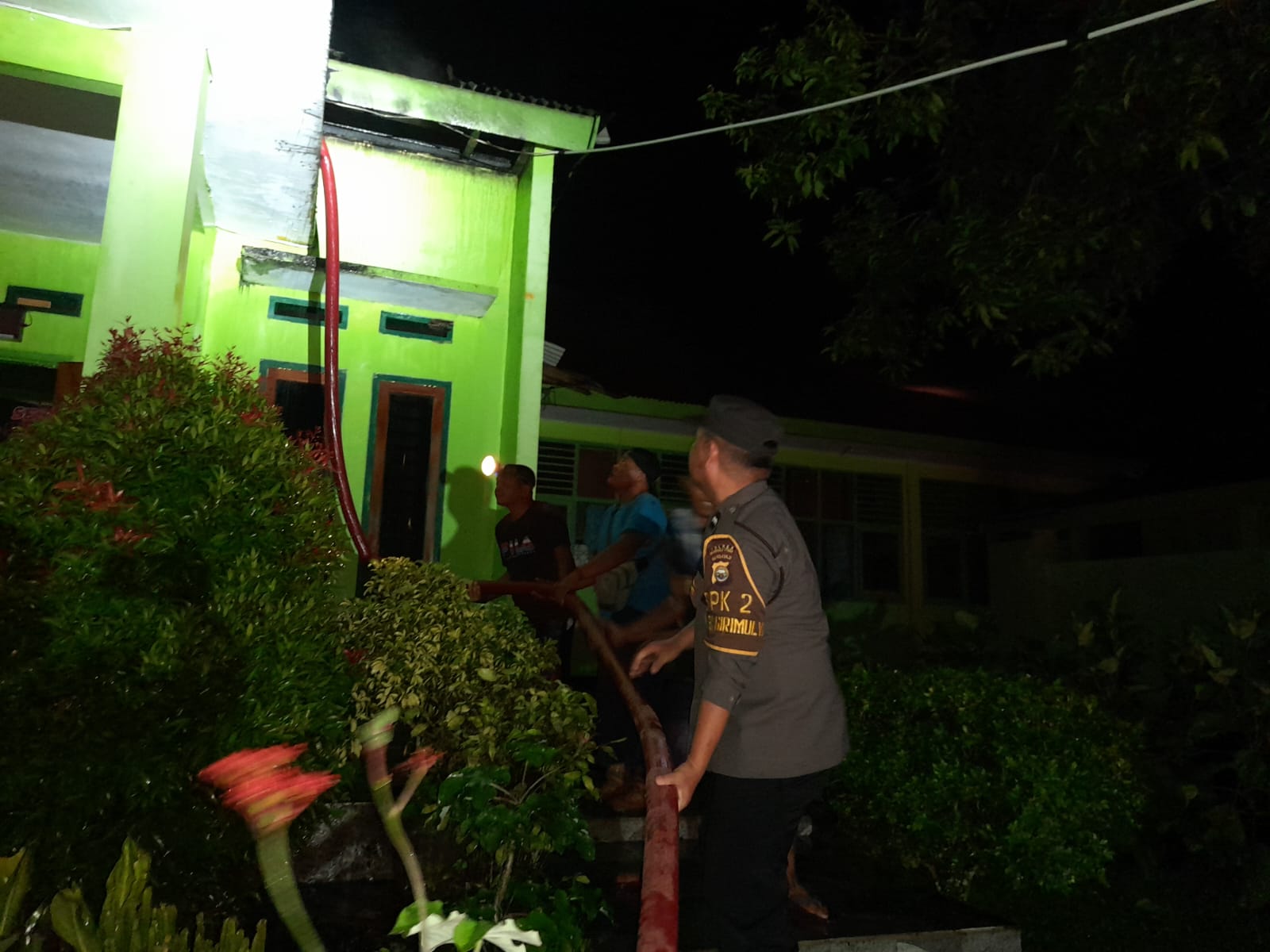 “Peristiwa ini terjadi sekitar pukul 23.30 WIB. Api berhasil dipadamkan oleh Pemadam Kebakaran bersama personel Polsek dan warga setempat, sehingga tidak menjalar ke gedung lainnya,” jelas Kapolsek Giri Mulya Iptu Freddy Simaremare, S.H.