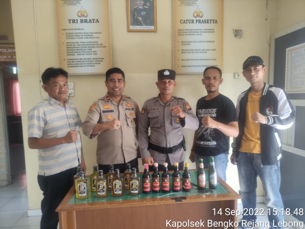“Ada 15 botol minuman keras yang berhasil kita sita,” terang Kapolres Rejang Lebong Polda Bengkulu AKBP Tonny Kurniawan, S.I.K melalui Kapolsek Bengko Iptu Singgih W, S.H.