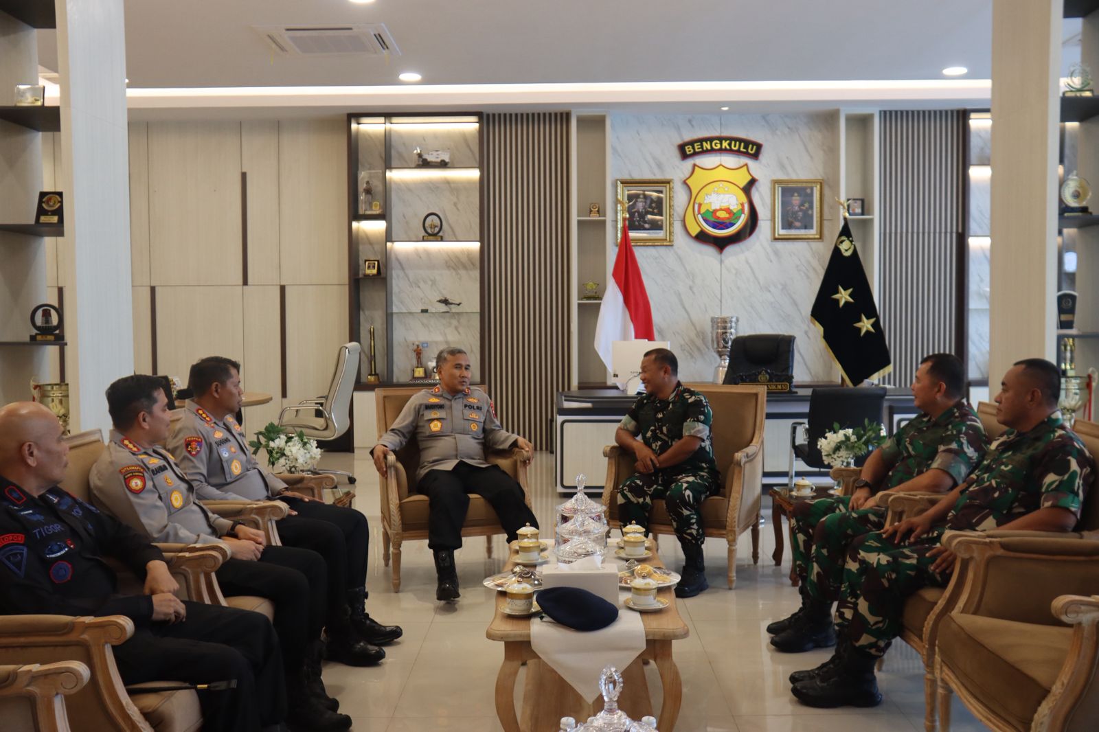 Kapolda Bengkulu, Irjen Pol. Mardiyono, S.I.K., M.Si., menyambut baik kedatangan Komandan Korem 041/Garuda Emas dan rombongan.