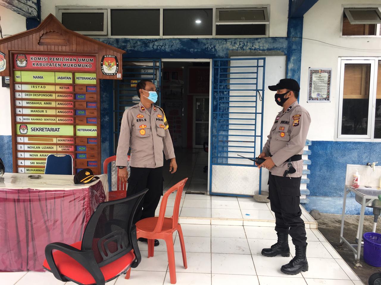 Bengkulu, Siberindo.co – Monitoring sekaligus pemberian arahan terhadap anggota yang melaksanakan pengamanan, Wakapolres Mukomuko Polda Bengkulu Kompol Edi Susanto S.Sos, Minggu (12/12/2020) kemarin melaksanakan kegiatan pengecekan di Kantor KPU Kabupaten Mukomuko.