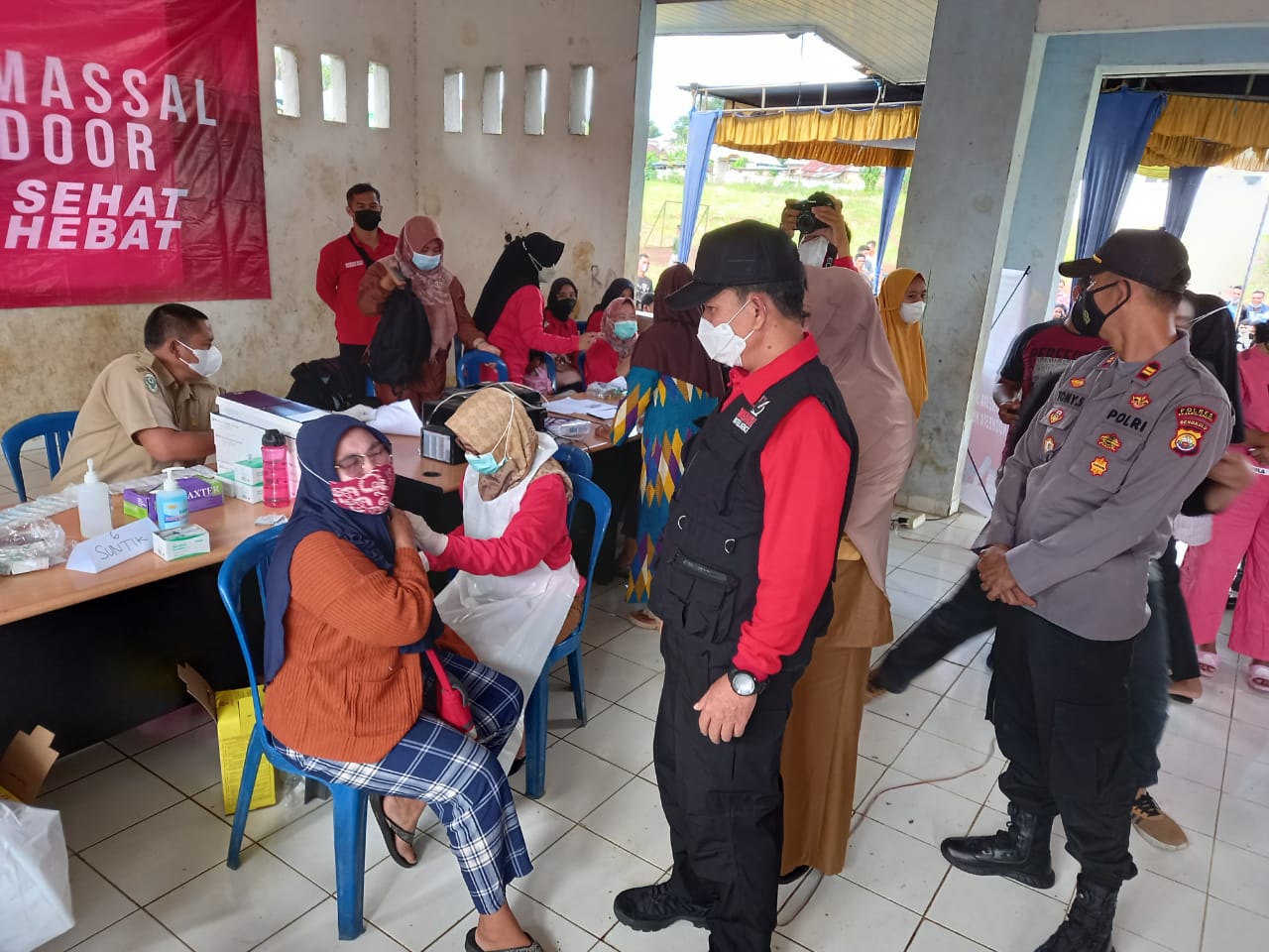 Dalam vaksinasi massal ini masyarakat juga diberika tali asih dari BIN Daerah Bengkulu berupa 1Kg beras dan 1 Kg gula pasir. Kemudian, selain pada dua titik tersebut, vaksinasi juga dilaksanakan secara door to door untuk menjangkau masyarakat kurang mampu, lanjut usia dan juga jompo.