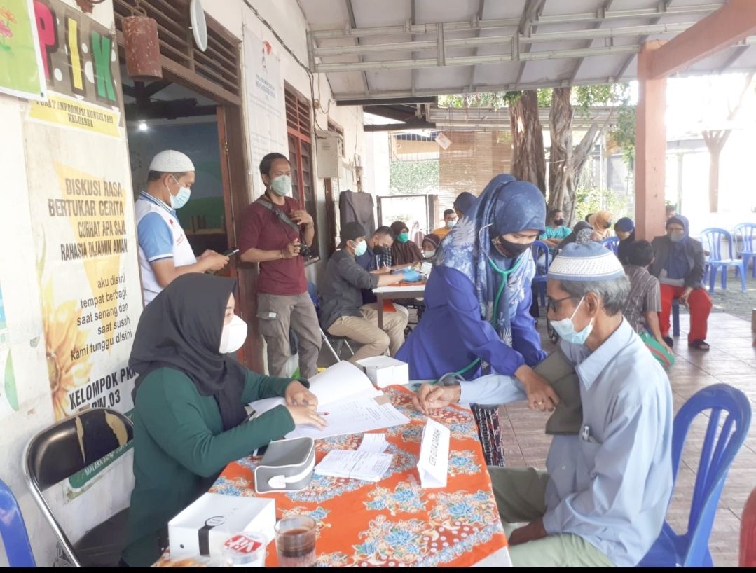 Kegiatan berlangsung di Gedung Serbaguna RW.03 di Jalan Nusa Indah 7, Malaka Jaya, Duren Sawit, Jakarta Timur pada Ahad, (12/12/2021). Lebih dari 150 orang hadir dalam kegiatan pemeriksaan kesehatan dan pengobatan gratis.