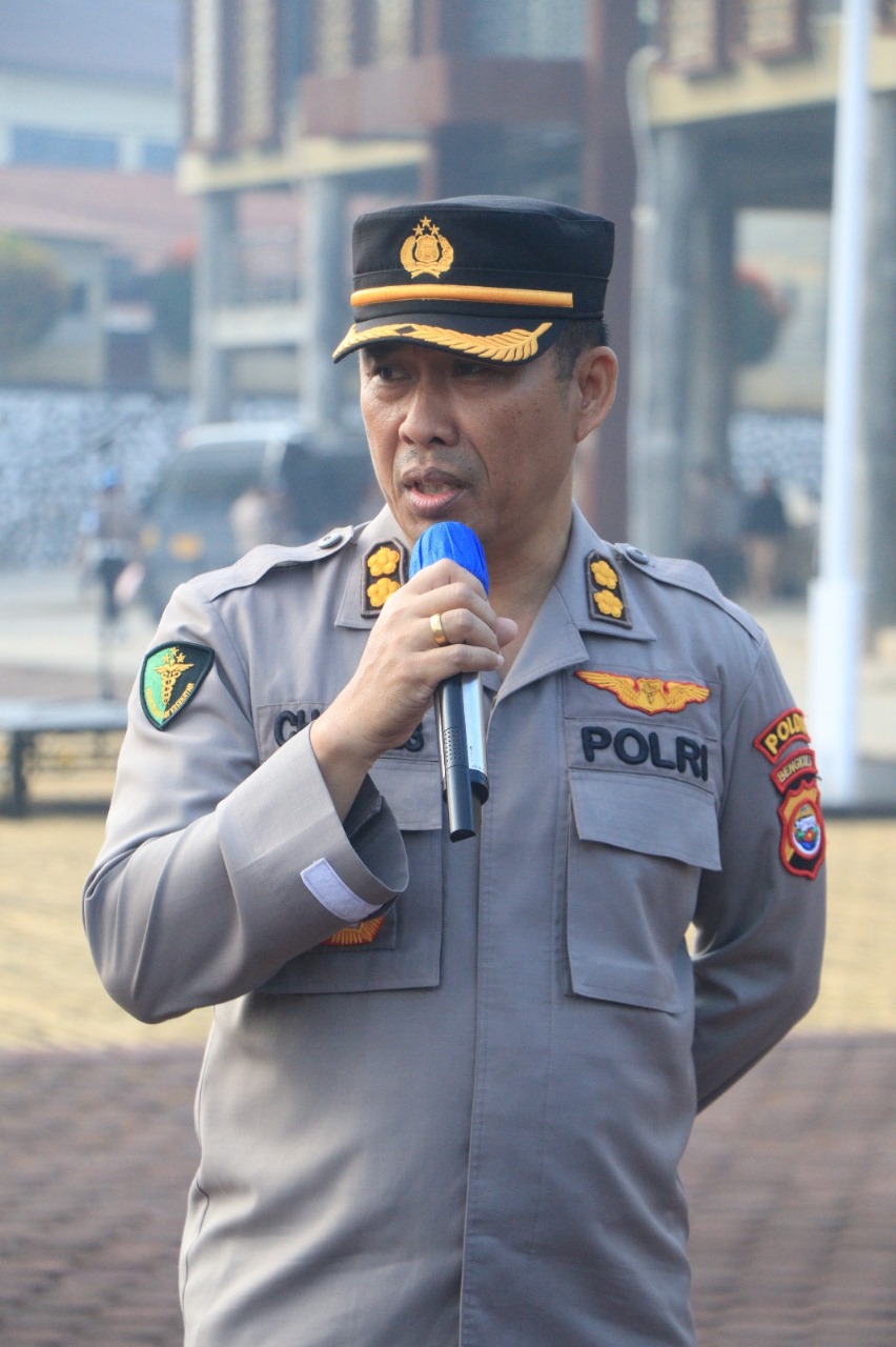 Bengkulu – Kabid Dokkes Polda Bengkulu AKBP dr. Charles B.P., Manullang memimpin apel personil OMB, bertempat di lapangan Rekonfu Polda Bengkulu, Kamis (14/12/23).
