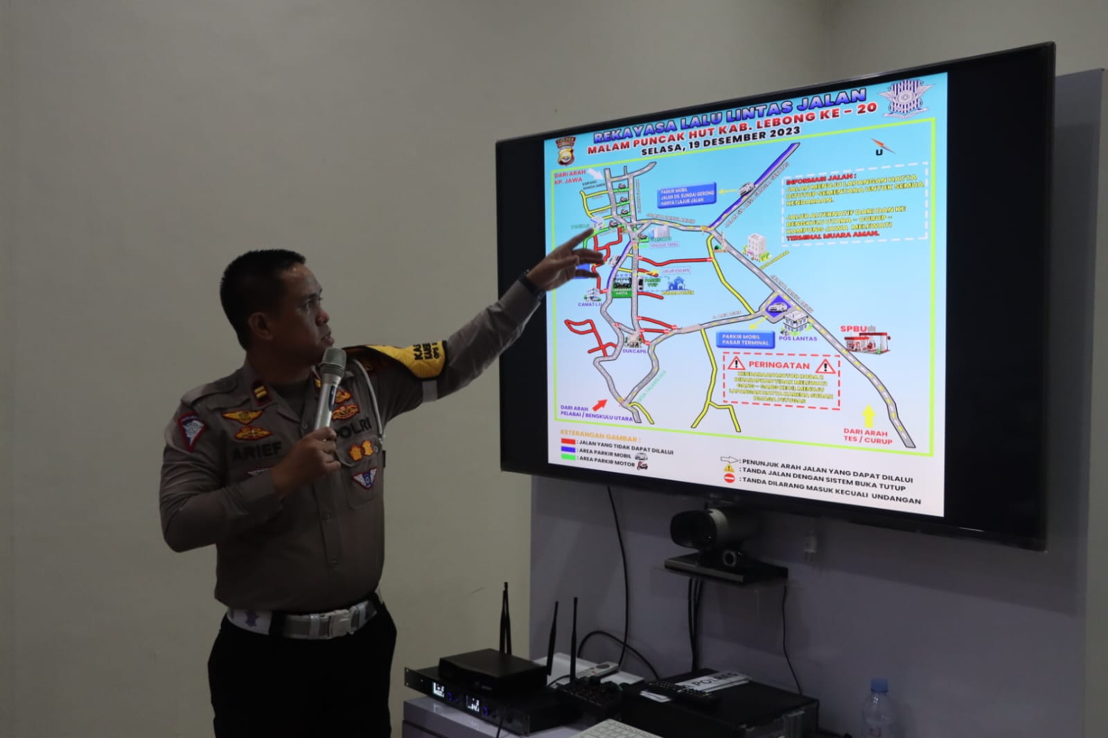 Lebong – Pada Rabu (13/12/2023), Satlantas Polres Lebong Polda Bengkulu, menggelar Rapat Koordinasi (Rakor) untuk melakukan rekayasa lalu lintas pada malam puncak HUT Kabupaten Lebong ke-20.