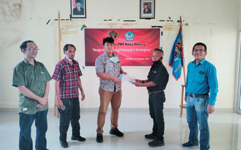 Ketua PWI Sulut, Vouke Lontaan bersama wakil ketua bidang pendidikan, Merson Simbolon menggelar konferensi PWI Kota Bitung yang bertemakan “Menuju Insan Pers yang Profesional dan Berintegritas” yang dimana pelaksanaannya dilaksanakan di kantor PWI Sulut, Rabu (13/1).
