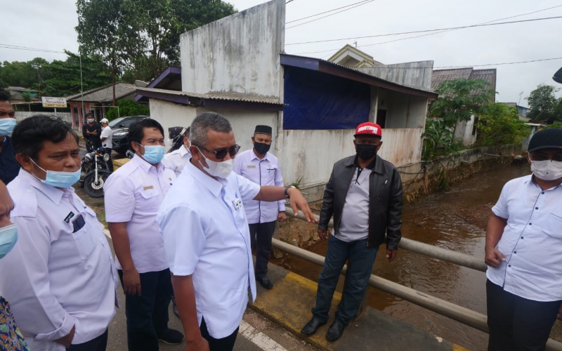 Usai memimpin rapat bersama jajaran satuan kerja Balai Wilayah Sungai Sumatera IV (BWS), Dinas PUPR Provinsi Kepri, PUPR Bintan dan BPBD Bintan di Kantor Bapelitbang Bintan, Rabu (13/1) pagi. Bupati Bintan, Apri Sujadi melakukan peninjauan di titik lokasi aliran drainase yang meluap (banjir) diakibatkan hujan deras seperti Kampung Kuala Lumpur dan Kampung Pisang, Kelurahan Kijang Kota, Kecamatan Bintan Timur.