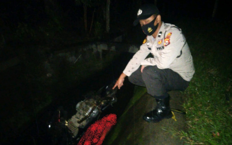 Selain itu disekitar TKP, petugas juga menemukan motor Yamaha Vixion warna hitam tanpa plat kendaraan dalam kondisi rusak usai kecelakaan. Kuat dugaan korban menabrak loneng jembatan yang terbuat dari besi dan kemudian masuk ke siring irigasi.