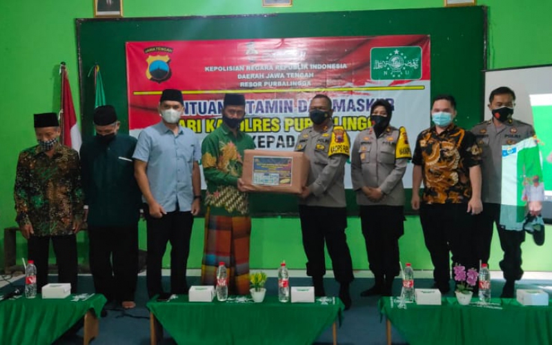 Kapolres Purbalingga AKBP Fannky Ani Sugiharto didampingi pejabat utama polres melaksanakan silaturahmi dengan Pengurus Cabang Nahdlatul Ulama (PCNU) PurbaIingga. Dalam kegiatan Kapolres menyerahkan bantuan berupa masker dan vitamin, Sabtu (13/2/2021).