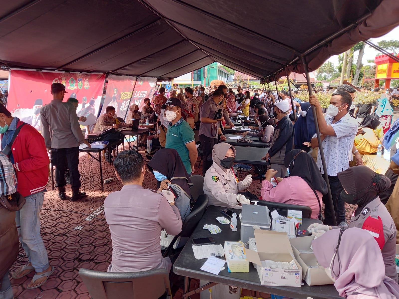 Siberindo.co – Polres Rejang Lebong Polda Bengkulu kembali menggelar vaksinasi massal di halaman Mapolres Rejang Lebong Selasa (15/3/2022). Namun kali ini ada yang berbeda dari biasanya, ratusan masyarakat sudah memadati halaman Polres Rejang Lebong untuk melakukan vaksinasi. Besarnya animo masyarakat ini tidak lepas dari adanya bonus berupa 1 liter minyak goreng bagi yang mengikuti vaksin untuk dosis 1,2 maupun dosis 3.