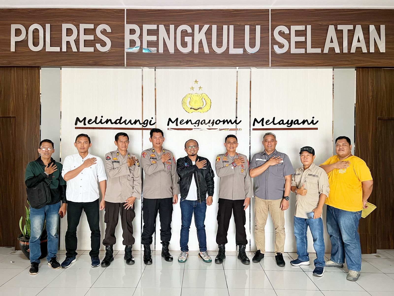 Bengkulu Selatan – Sejumlah Pejabat Utama (PJU) Polres Bengkulu Selatan Polda Bengkulu, diantaranya Waka Polres Kompol Rahmat Hadi, Kabag Ops AKP Andri Anwar, Kasat Intelkam AKP Ahmad Khairuman, Kasi Humas AKP Sarmadi, Kasat Reskrim Iptu Susilo, menerima kunjungan silaturahmi Ketua Serikat Media Siber Indonesia (SMSI) Provinsi Bengkulu Wibowo Susilo, dan Ketua SMSI Bengkulu Selatan, Fajrul Tamtomi atau yang biasa disebut Dang Tom, Selasa (14/3/2023) siang.