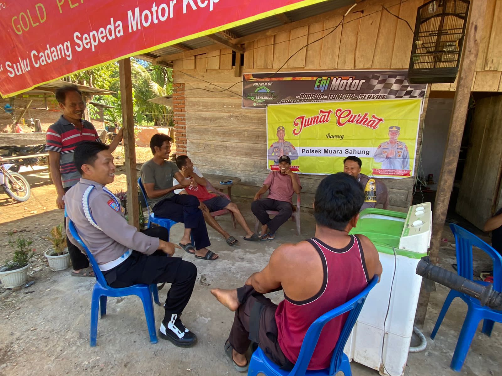 Kegiatan Jumat Curhat dihadiri personel Polsek Muara Sahung dan perangkat desa serta masyarakat setempat.