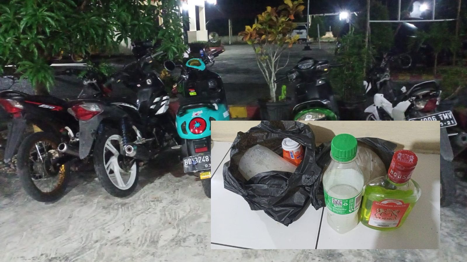 Bengkulu Selatan – Tim patroli gabungan Polres Bengkulu Selatan dan Polsek Kota Manna mengamankan kendaraan bermotor tanpa surat-surat dan minuman keras (Miras). Adapun miras yang diamankan jenis tuak sebanyak 2 liter dan Vodka 1 botol yang diduga untuk pesta miras, Minggu (24/05/2023) dini hari.