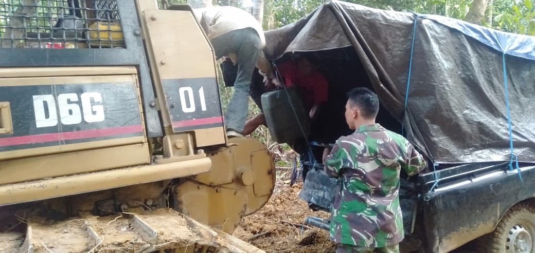 [11:01, 6/15/2021] Kx Jalu Kantor: Sebelum Pemadatan Jalan TMMD ke 111 Anggota Satgas Cek Dozer .