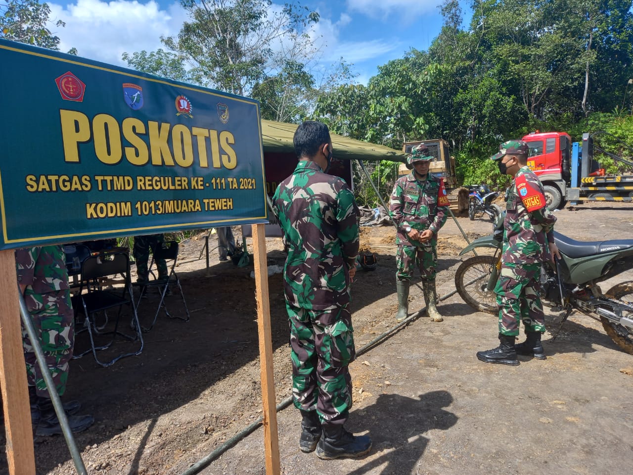 Barito Utara – Dandim 1013/Muara Teweh Letkol Kav Rinaldi Irawan, M.Han. selaku Dansatgas TMMD Reguler Ke-111 Ta 2021 melaksanakan kunjunganya di Poskotis TMMD dilanjutkan ke lokasi TMMD. Senin (14/06/2021)