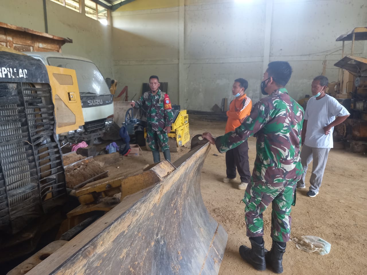 Sebelum alat berat digunakan salah satu anggota Satgas TMMD dampingi operator untuk memeriksa mesin alat berat tersebut.