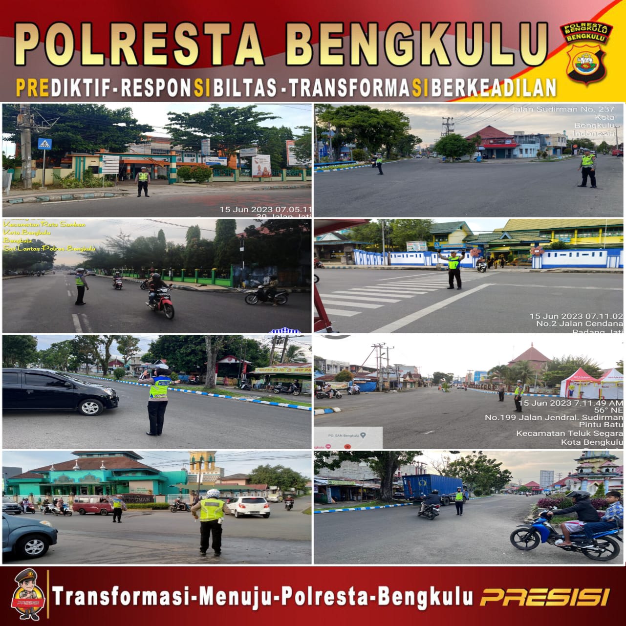 Kota Bengkulu – Polresta Bengkulu Polda Bengkulu melaksanakan Commander Wish Pengamanan dan Pengaturan Pagi di wilayah hukum Polresta Bengkulu Kamis (15/06/2023).