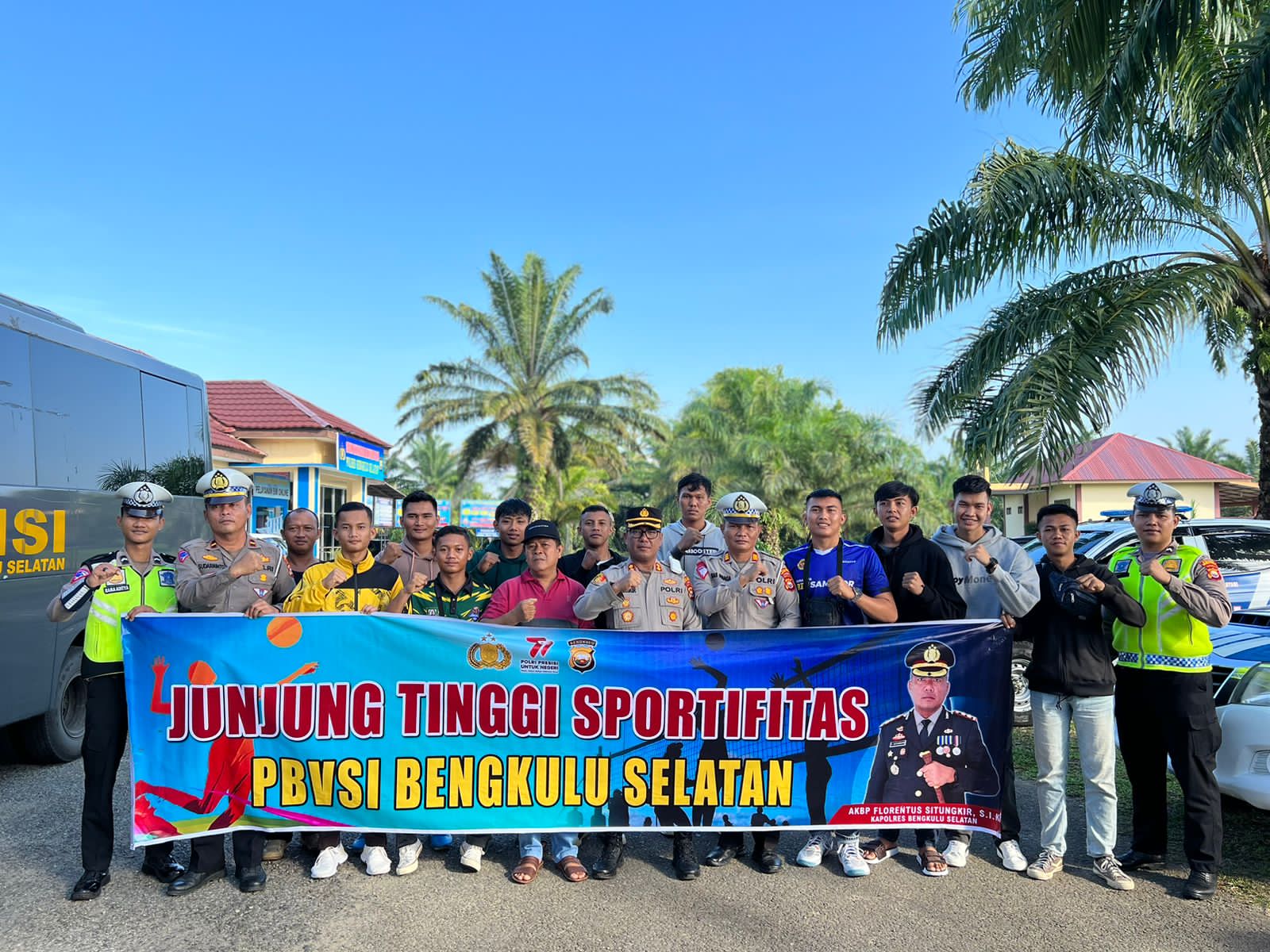 Kapolres Bengkulu Selatan AKBP Florentus Situngkir S.I.K., didampingi oleh Waka Polres Kompol Rahmat resmi melepas kontingen Tim Bola Voli Putra untuk mengikuti Kejurda di Bengkulu Utara.