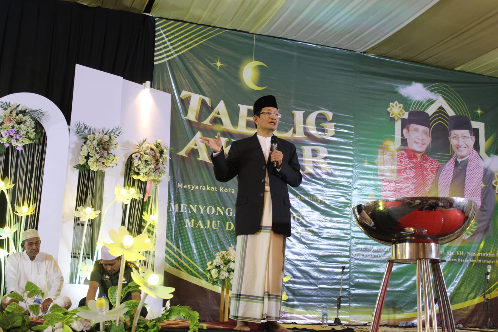 Probolinggo-Imam Besar Masjid Istiqlal Prof. Dr. KH. Nasaruddin Umar, M.A menghadiri undangan Tablig Akbar yang digelar oleh masyarakat Kota dan Kabupaten Probolinggo, Provinsi Jawa Timur. Tablig Akbar dilaksanakan pada Selasa, 13 Juni 2023 di kediaman H. Syamsul Alam. S.E Ketua KKSS Probolinggo, Provinsi Jawa Timur.