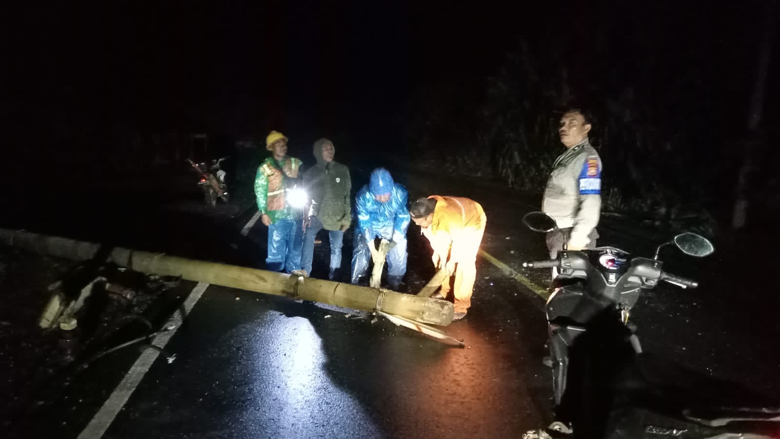 Bengkulu Utara – Selasa (13/6/2023) malam petugas piket jaga Polsek Lais Polres Bengkulu Utara Polda Bengkulu, merespon laporan warga tentang adanya tiang listrik yang tumbang.