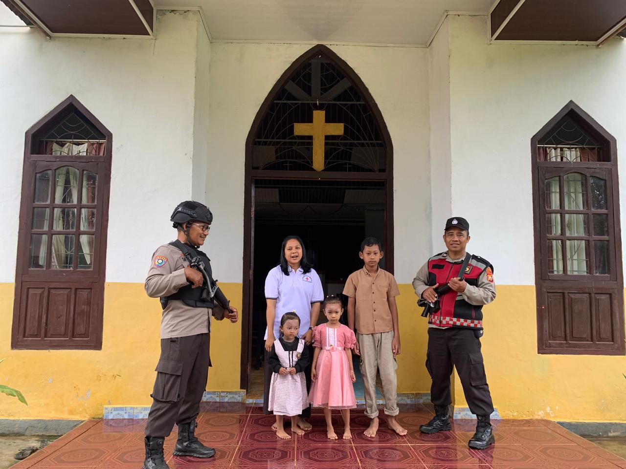 Padang Ulak Tanding – Polsek PU. Tanding Polres Rejang Lebong Polda Bengkulu Melaksanakan Kegiatan Pengamanan Ibadah Gereja GKII Kasie kasubun