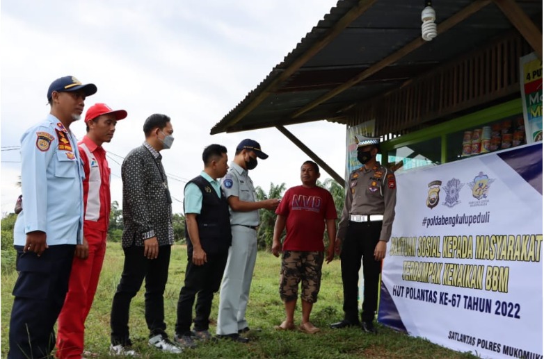 Bengkulu, Siberindo.co – Menyikapi kebutuhan masyarakat terkait BBM, Polres Mukomuko kembali memberikan bantuan. Kali ini bukan paket sembako seperti sebelumnya, bekerjasama dengan perwakilan dari Bank Rakyat Indonesia (BRI) Kantor Cabang Mukomuko, Jasa Raharja Mukomuko, pihak SPBU Bandar Ratu, dan Bidang Perhubungan Dinas Pekerjaan Umum dan Penataan Ruang Mukomuko serta Ketua PWI Mukomuko memberikan kupon bbm bersubsidi pertalite langsung diberikan kepada masyarakat yang membutuhkan.