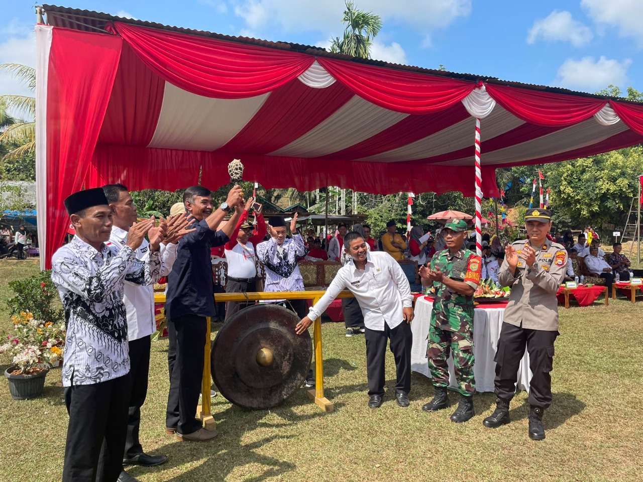 Bengkulu Utara – Kapolsek Ketahun Iptu Freddy Simaremare S.H., menghadiri upacara peringatan hari ulang tahun Persatuan Guru Republik Indonesia (PGRI) ke-78 dan hari Guru Nasional tahun 2023 tingkat Kecamatan Pinang Raya, di Lapangan Desa Bukit Harapan Kecamatan pinang Raya Kabupaten Bengkulu Utara, Rabu (15/11/2023).