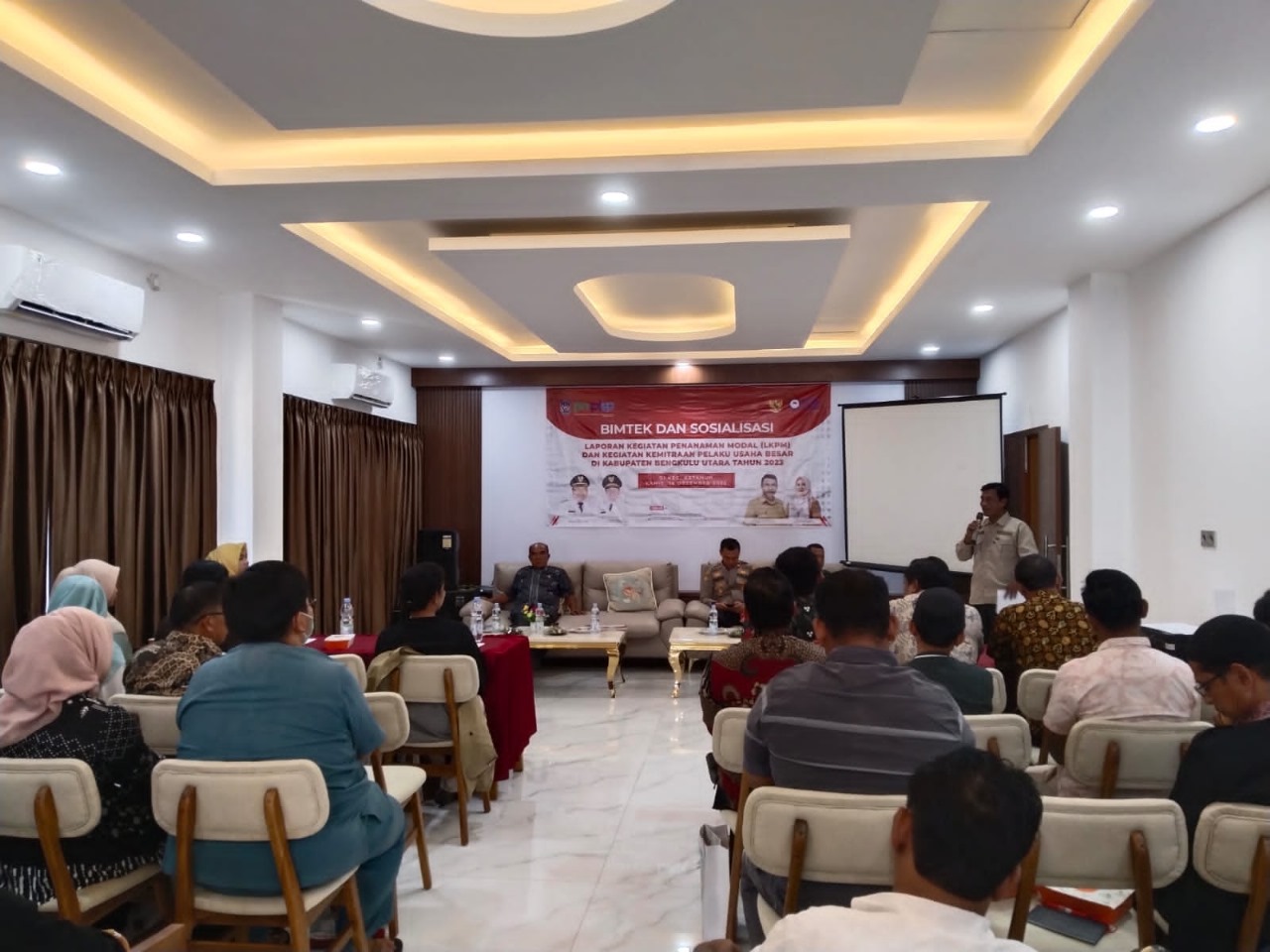 Bengkulu Utara – Kapolsek Ketahun Iptu Freddy Simaremare S.H., menghadiri undangan kegiatan Bimtek dan soialisasi laporan kegiatan penanaman modal (LKPM) serta kegiatan kemitraan pelaku usaha besar Kabupaten Bengkulu Utara yang berlangsung di Hotel Grand Lestari Desa Giri Kencana Kecamatan Ketahun, pada pagi Kamis (14/12/2023).