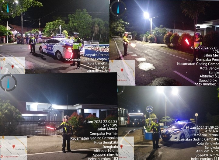 Bengkulu – Personel Sat Lantas Polresta Bengkulu Polda Bengkulu, Patroli Blue Light di sepanjang ruas Jalan Pariwisata dan Jalan Cempaka Permai Kota Bengkulu pada Senin (15/1/24) pukul 21.30 WIB s/d selesai.