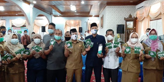 Pembagian masker, face shield dan partisi dilakukan secara simbolis oleh Wakil Walikota Bengkulu Dedy Wahyudi didampingi Staf ahli bidang Pemerintahan Kota Bengkulu Matriyani Amran, Kadis Perindag Dewi Dharma dan Kadinkes Susilawaty.